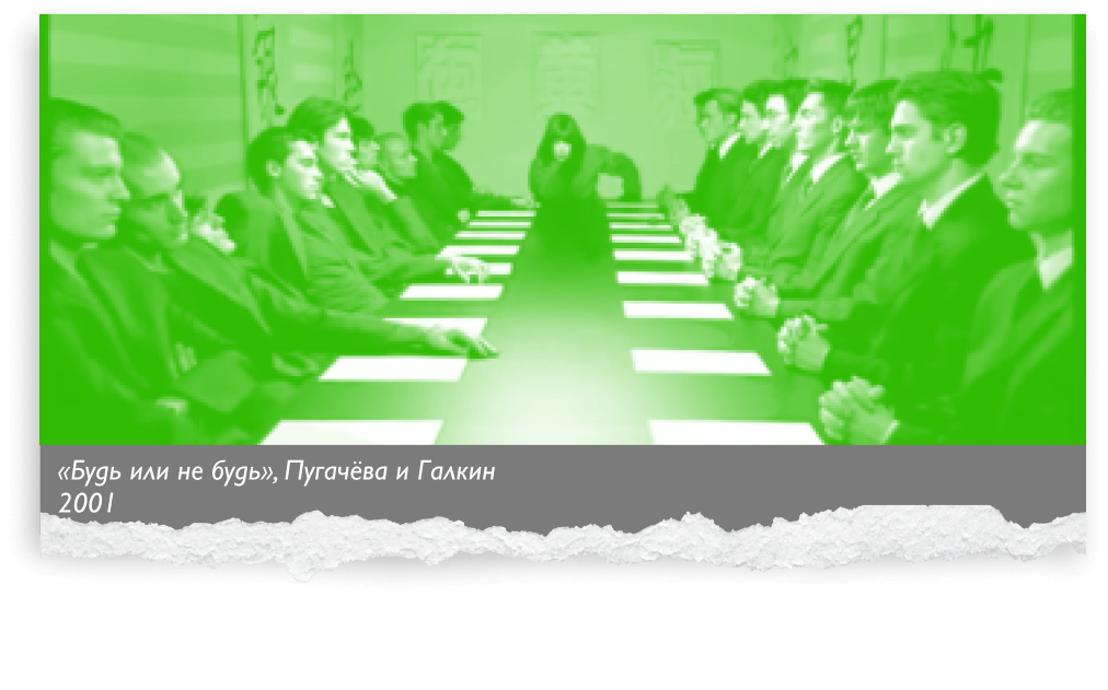 Неожиданный дуэт года — Пугачёва и Галкин — записывают песню «Будь или не будь». Любимая мадам Брошкина перевоплощается в женщину-вамп: вместо рыжей копны — дерзкий чёрный парик, вместо короля эстрады — юный Галкин. Вся страна гадает: неужели между ними что-то есть? Для тех, кому нет дела до звёздных романов, «Дискотека Авария» выпускает хит «Заколебал ты!» Теперь мы знаем, подо что можно отвести душу, когда достанет всё.