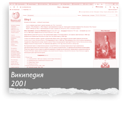 Запускается «Википедия» — крупнейший справочник в интернете и вообще в истории человечества. Кажется, в ней есть статьи на любую тему, а перекрёстные ссылки в них наводят морок. Можно зайти на вики, чтобы посмотреть годы правления Петра I, и через два часа случайно обнаружить себя в статьях про квантовую запутанность, кротовые норы и пустынных тушканчиков. Информация из википедии теперь аргумент в любом споре. А ещё «википедией» теперь обзывают самых заумных ботаников.