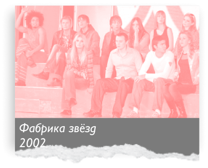 «Фабрика звёзд» доказывает, как бывает круто, если ты попал на ТВ. Первое музыкальное реалити-шоу, где можно слушать, как поют люди, и подглядывать, как живут. «Фабрика» станет настоящей артелью по производству артистов 2000-х. Подарит нам группу «Корни» с легендарными текстами про «колосящиеся изумрудные брови», юного Тимати, «шоколадного зайца» Пьера Нарцисса, Вову-чуму и ещё добрую сотню музыкантов разной степени известности.