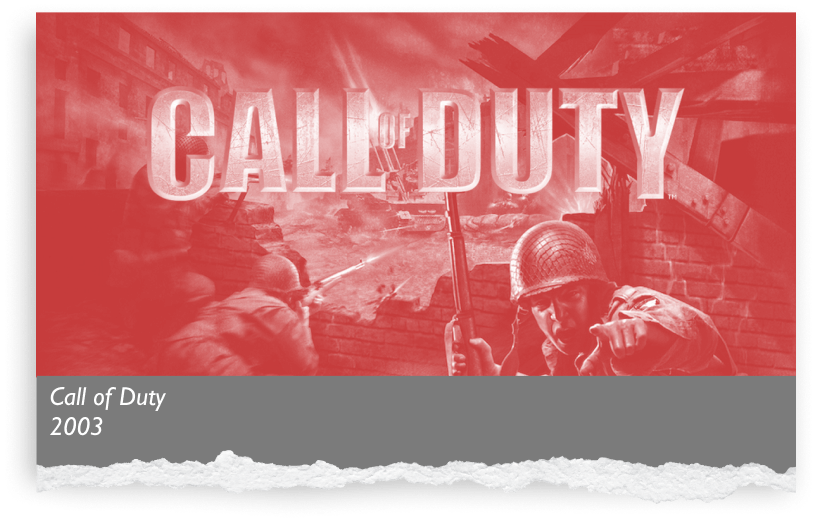 Долг зовёт нас стрелять фрицев на полях Второй мировой в экшене от первого лица. В Call of Duty, в отличие от ближайшего конкурента Medal of Honor, войну можно увидеть не только глазами американского солдата, но также советского и британского — в игре три основные кампании. Call of Duty начинает свою долгую историю как «шутер про Вторую мировую», перетекает в шутер про гипотетическую Третью мировую и в последних сериях добирается до далёкого будущего и космоса.