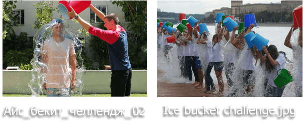 Благотворительный флешмоб был задуман как акция в поддержку больных боковым амиотрофическим склерозом. Но внезапно прекратился в вирусный челлендж. Ведро ледяной воды выливают на себя Эминем, Марк Цукерберг, Дэвид Линч, Джастин Бибер и Владимир Жириновский. Были и национальные вариации: так, основатель LiveInternet Герман Клименко бросает «настоящий русский вызов» и предлагает трём друзьям вместо обливания водой выпить стопку водки без закуски.